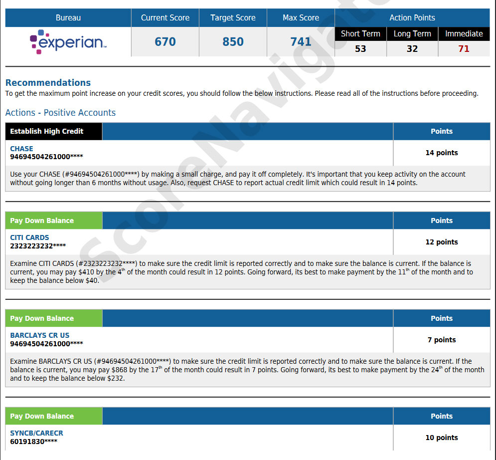 ScoreNavigator's Point Deduction Technology® is nothing short of a paradigm shift in credit report analysis. This proprietary technology employs a sophisticated algorithm that goes beyond the surface-level assessment of credit reports, offering a granular analysis of each item's impact on the overall credit score. By assigning a point deduction value to both positive and negative report items, it provides users with a clear, numerical understanding of what's affecting their credit and how.
